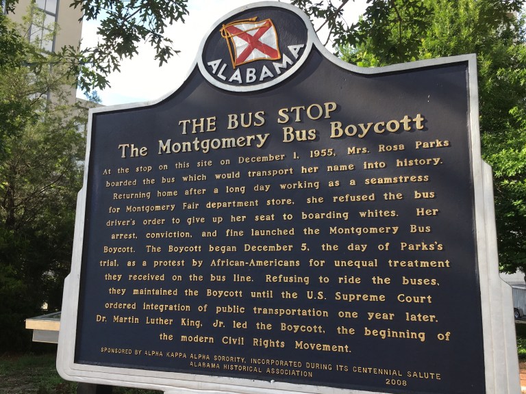 I dag kjørte vi fra Pensacola beach, og nordover til Montgomery, Alabama. Montgomery er hovedstaden i delstaten, og kanskje mest kjent for at det var her den tøffe dama Rosa Parks nektet å reise seg for en hvit mann på bussen og dermed startet protestene mot raseskillet i USA på 50-tallet.