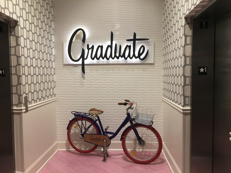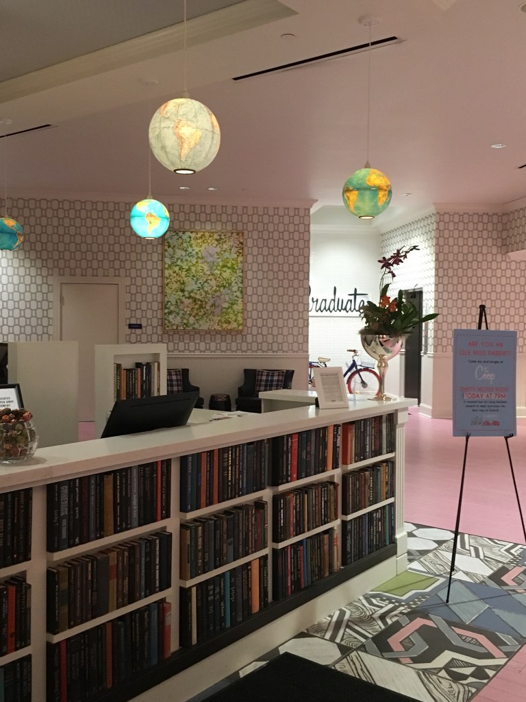 Hotellet vårt het “The Graduate”, og hadde en gjennomført stil. Resepsjonen var utformet som et bibliotek, og det hang globuser i taket. Sitteplassene i lobbyen hadde også sjakkbrett på bordene.