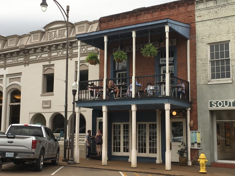 Vi spiste på denne restauranten: City Grocery. Sjarmerende bygning, og veldig god mat!