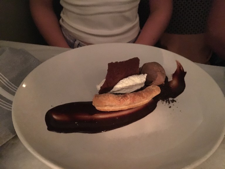 Koser oss! Det var tydeligvis også den store “velte vannglasset” dagen, først var sidemannen (som for øvrig så ut som han var på en første date) uheldig og sølte iskaldt vann oppover låret mitt, og litt senere veltet servitøren Natalie sitt vannglass (som heldigvis var ganske tomt) ned i fanget hennes:-)