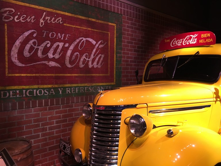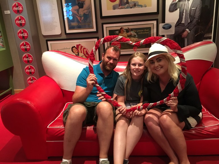 Deretter gikk turen videre til World of Coca Cola. Her drikker vi cola med John Pemberton, som fant opp denne leskende drikken!