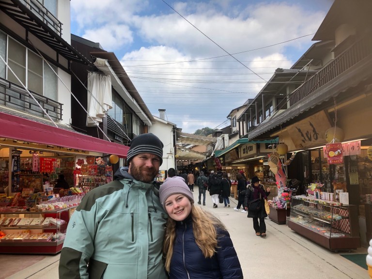Videre var vi på øya Miyajima for å se på den flotte helligdommen Itsukushima. På øya var det også en kjempekoselig hovedgate som det var veldig gøy å gå å kikke i!