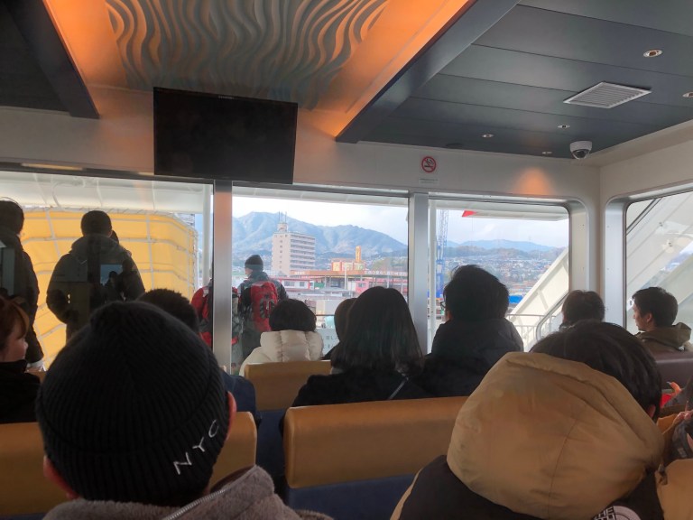 Vi måtte ta en ferje for å komme ut til øya: