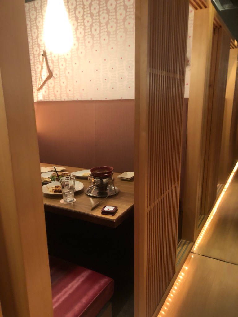 På kvelden spiste vi på en restaurant hvor man fikk sin egen bås hvor man kunne lukke døren: