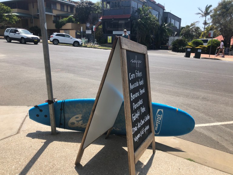 Etterpå ble det en deilig frokost på en av de koselige kafeene i Byron bay: