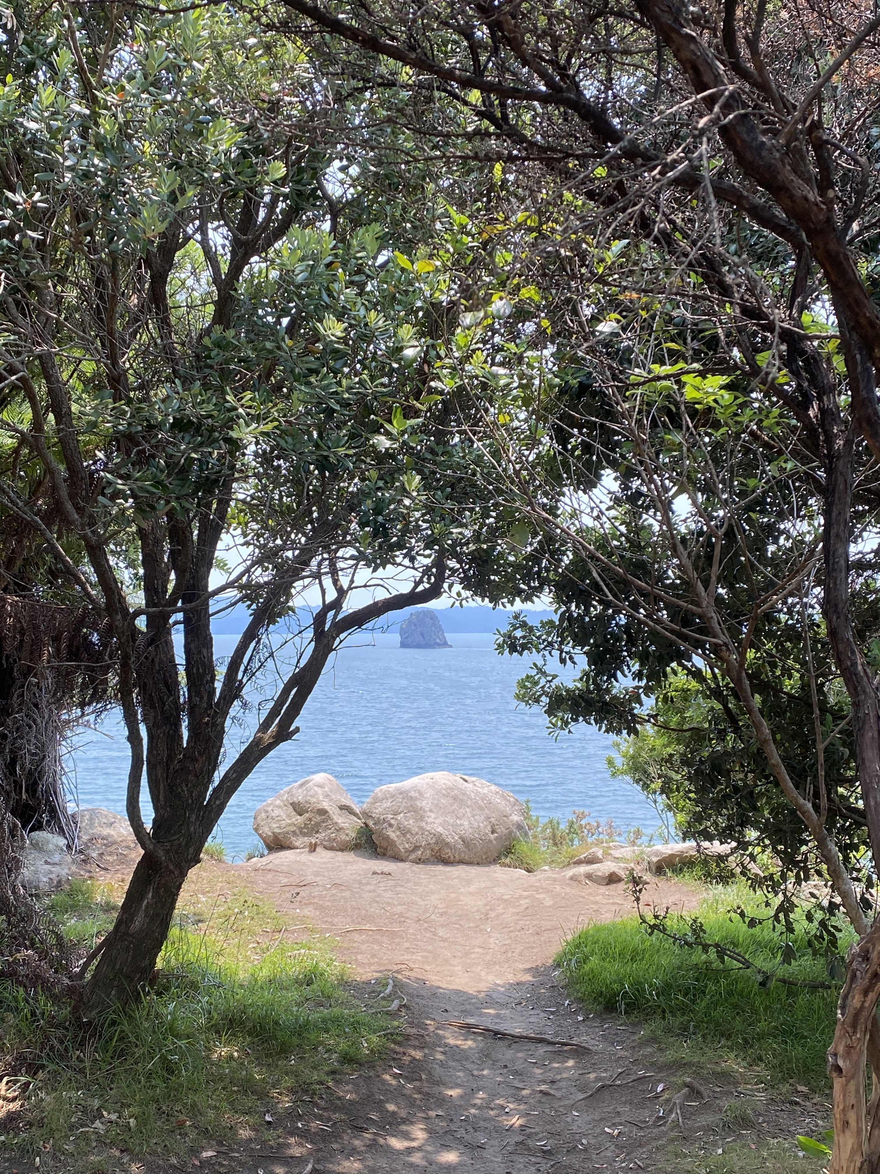 Det var mange idylliske steder langs kyststien, og stranda over skal ha blitt brukt til å filme en scene i Narnia-filmen. Etter dette dro vi til vulkanen Mount Paku. Her klatret vi til toppen, og fikk dermed fantastisk utsikt over Slipper Island: