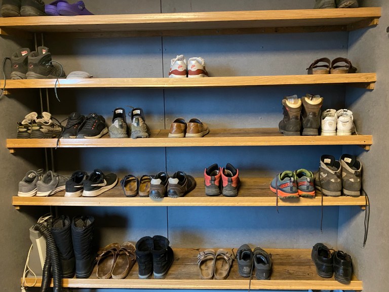 Vi hadde leiebil, og kjørte inn til hotellet som lå midt i byen. Her måtte man ta av seg skoene før man gikk inn: