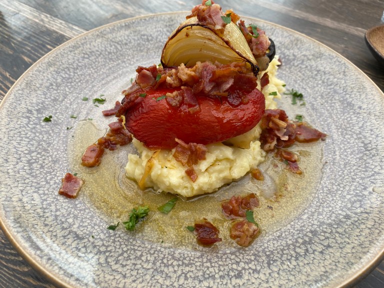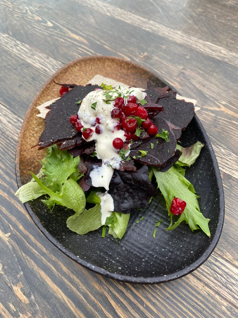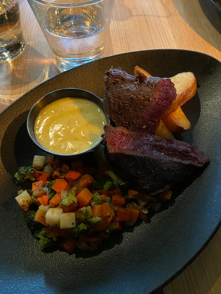 Vi dro over på Kroa som lå like ved for å få oss noe å spise. Der fikk vi smake på både hval og klippfisk, som var utrolig godt!