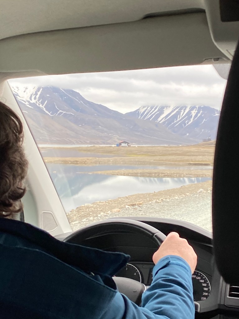Etter å fått påfyll av energi og ha lagt bagasjen på hotellrommet la vi ut på en liten sightseeingrunde. Olaug, som er her for tiende gang, fungerte utmerket som guide. Vi dro blant annet til kirka, Taubanesentralen, Bjørndalen og Gruve 7. Vi så reinsdyr og polarrev på nært hold, og flere ulike fuglearter!