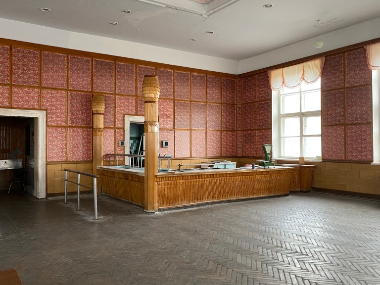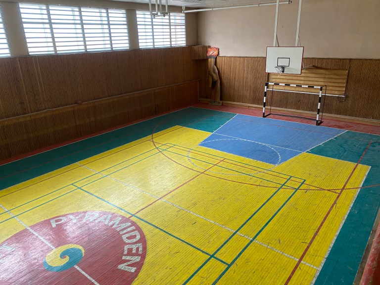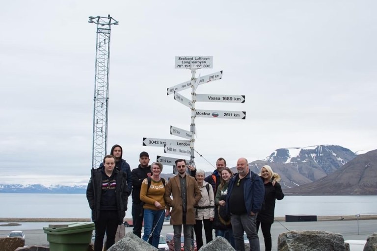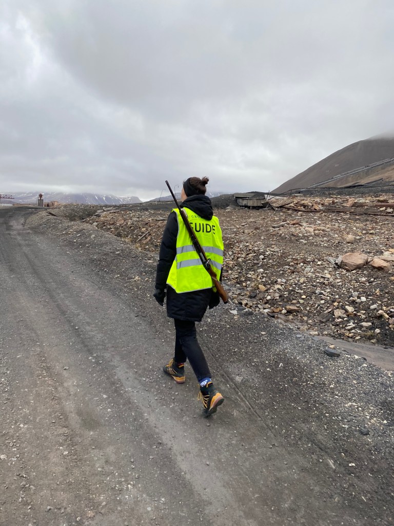 Vi hadde en to-timers guidet tur, hvor vi fikk se ulike fellesarealer i byen, som kantine, gymsal og svømmehall. Guiden måtte være bevæpnet i tilfelle vi skulle treffe på en isbjørn!