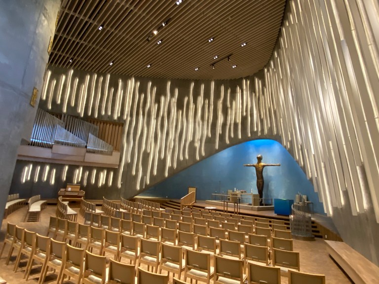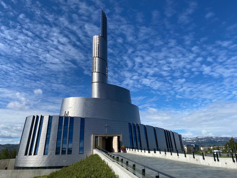 I Alta sentrum stod også den flotte Nordlyskatedralen som et midtpunkt i byen. Her måtte vi også innom og kikke: