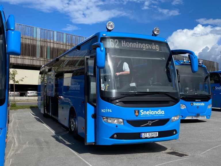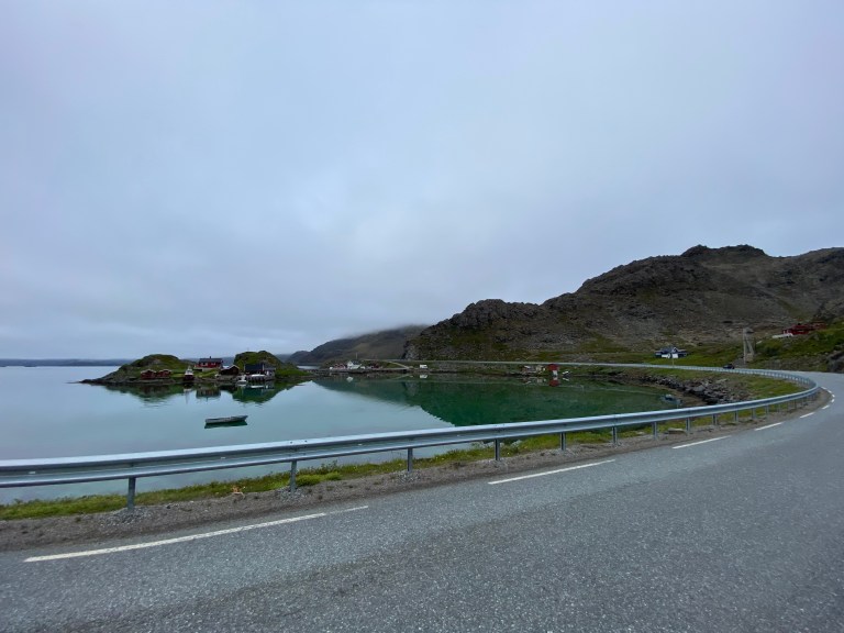Etter hvert var det på tide å forlate Alta og sette kursen mot Honningsvåg. Denne etappen gikk med buss. Vi dro ned til bussterminalen, som bestod av ett enkelt busstopp. Øyvind utbryter fornøyd: “Haugen er deilig!” Før han innser at det ikke er akkurat det det står, hehe!😂