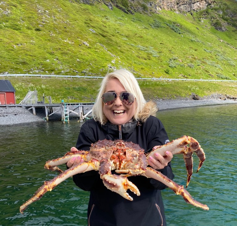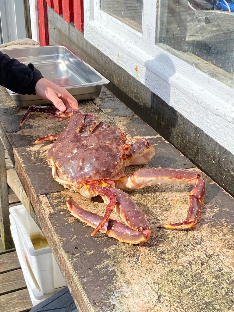 I Honningsvåg stod de gode opplevelsene i kø! Kongekrabbesafari var en av dem, hvor vi fikk være med å både hente dem opp, tilberede og spise dem.