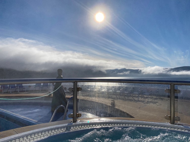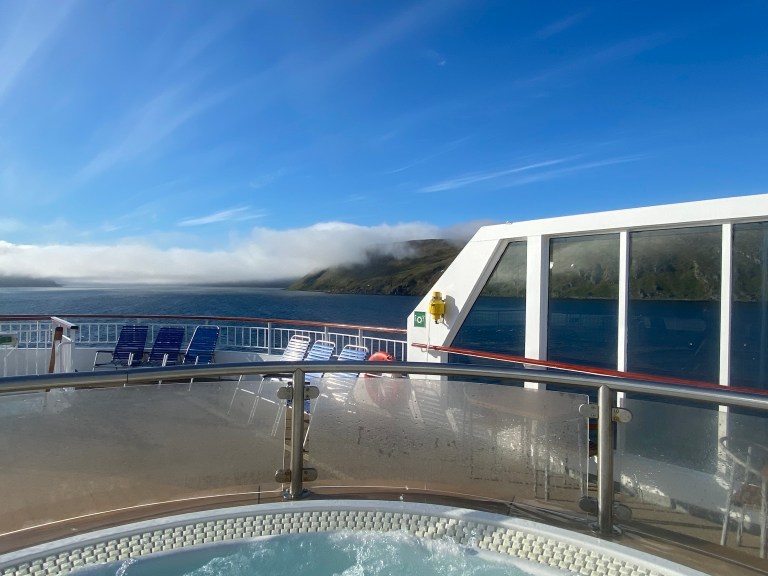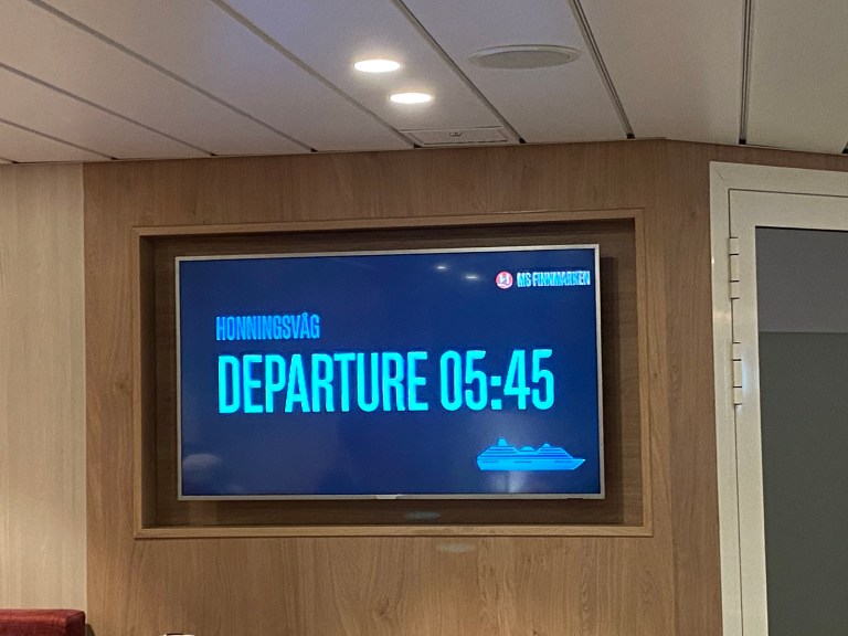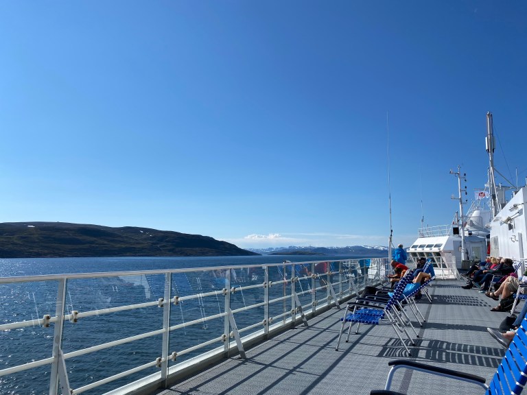 Etter en helt fantastisk dag, var vi i seng i to-tiden, og skulle opp igjen klokka fem for å rekke Hurtigruten. Den skulle vi ta fra Honningsvåg til Tromsø, med et stopp i Hammerfest. Natalie og Øyvind kjente på at det ble lite søvn, og prøvde å slappe litt av i “godstolene”. Jeg var derimot ikke noe særlig trøtt, og dro derfor heller for å bade i jacuzzien og nyte soloppgangen ute på dekk. En fantastisk start på dagen!😍