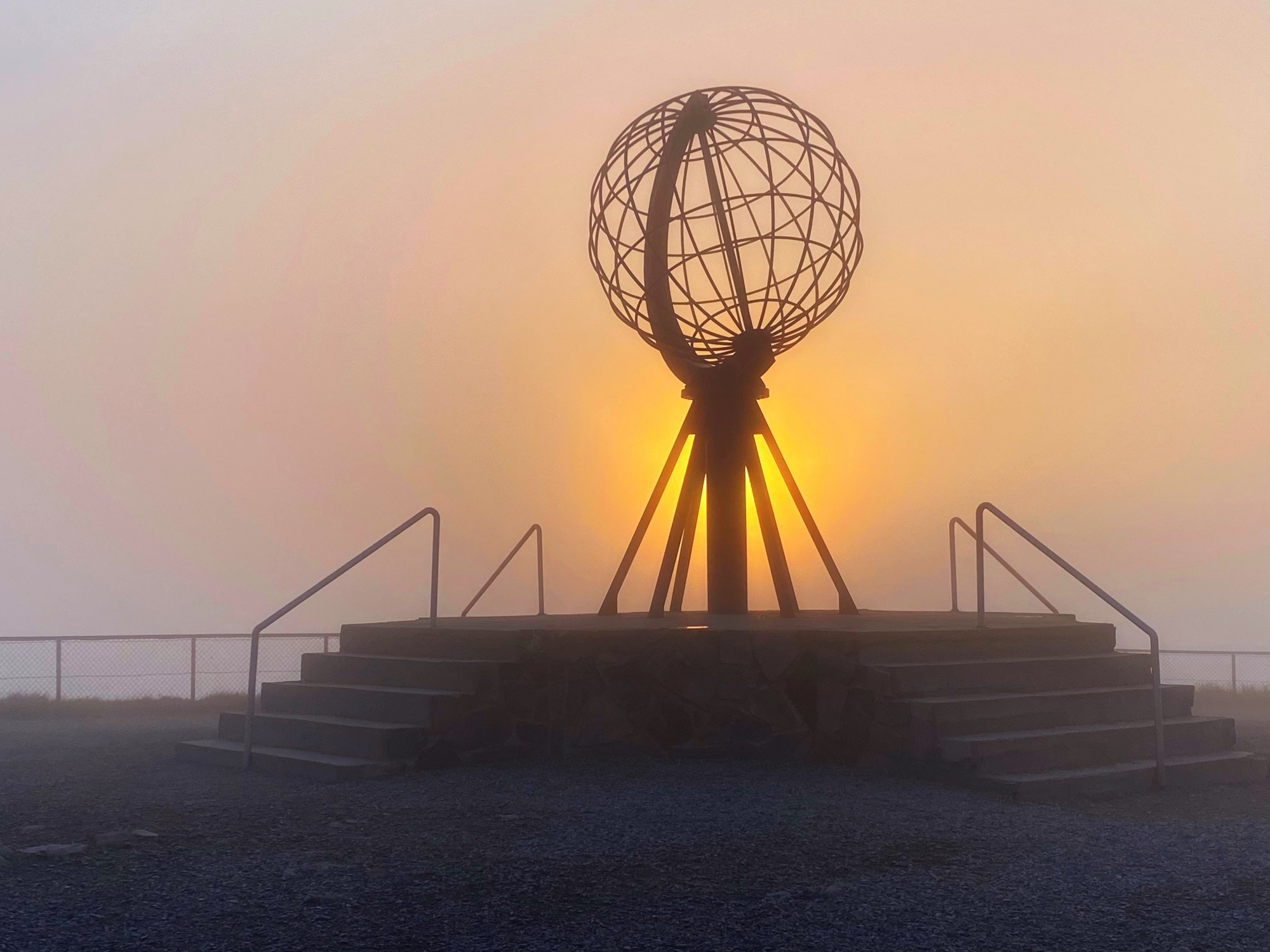 Framme på Nordkapp var vi på Nordkappmuseet, så panoramafilmen og tok det obligatoriske bildet ved globusen. Det hadde vært klart og fint hele dagen, men på kvelden ble det veldig tåkete! Guiden mente det dermed ikke var så stor sjanse for å se midnattssolen, og Natalie og Øyvind var enige og hadde også lyst til å dra tilbake før tiden. Men som en evig optimist var jeg selvsagt overbevist om at midnattssolen kom til å komme ved midnatt, og fikk overtalt de andre til å bli. Hehe☺️