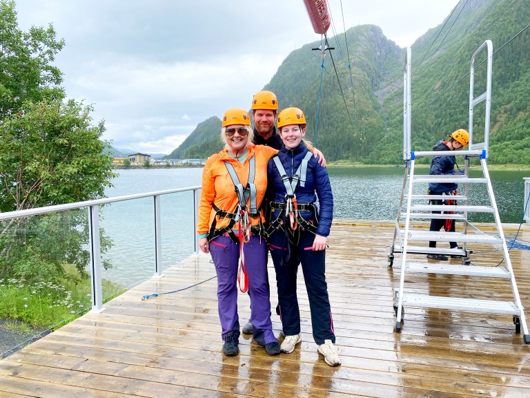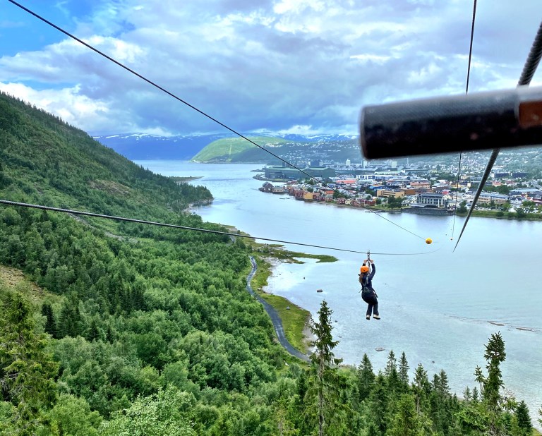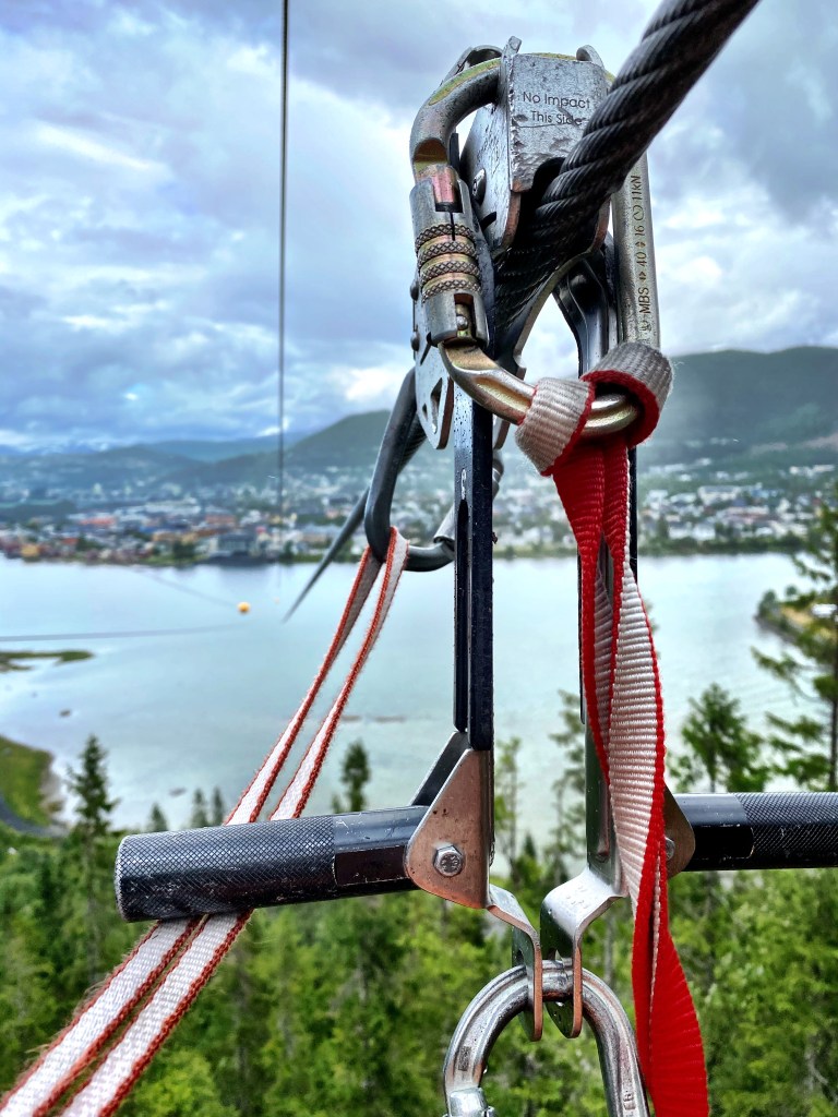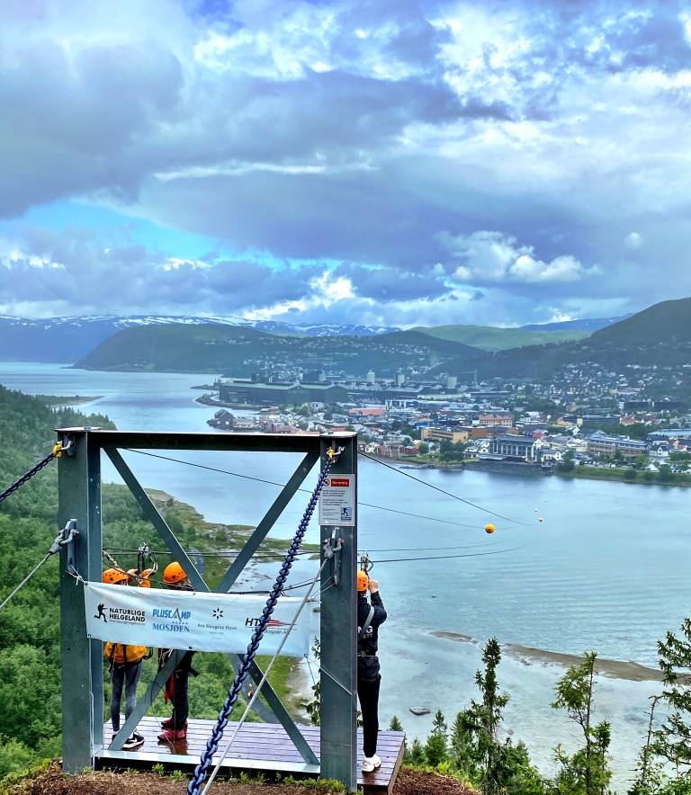 Mosjøen har også en av landets lengste ziplines, som selvsagt måtte testes ut! For å komme opp måtte vi gå et stykke opp Helgelandstrappa, som totalt har over 3000 trinn og er en av verdens lengste steintrapper.