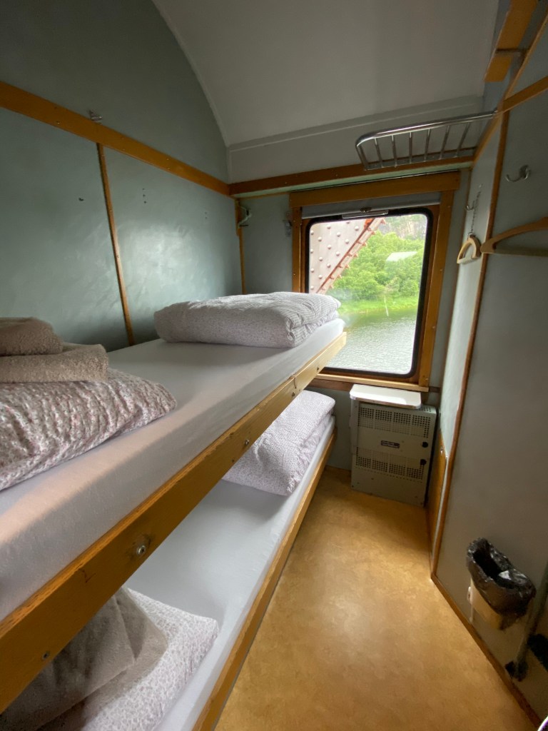 Etter Vega gikk turen videre sørover på Kystriksveien. Det er gøy å finne overnattingssteder litt utenom det vanlige, og rett nord for Namsos hadde vi funnet et sted hvor man kunne overnatte i et nedlagt tog!