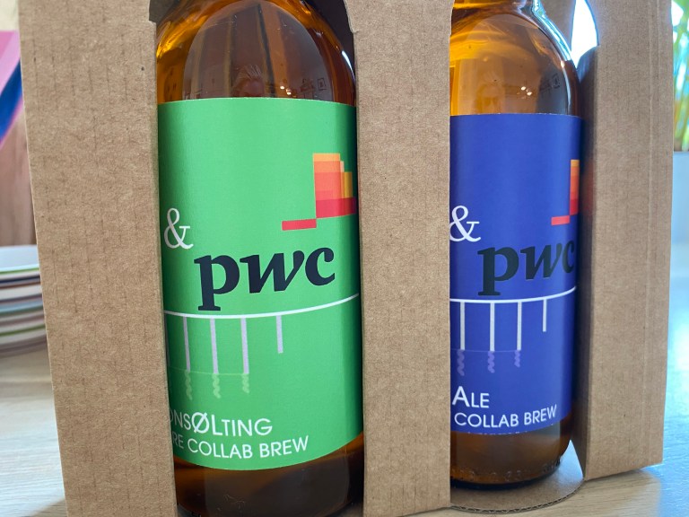 Yngve jobber på pwc, noe som også Øyvinds bryggekompis Andreas gjør, så han fikk med seg egenprodusert pwc-øl!