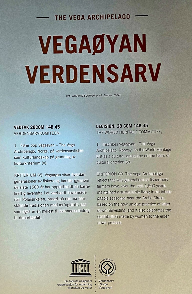 Dagen etter tok vi ferja over til Vegaøyene, som ble oppført på verdensarvlista i 2004.