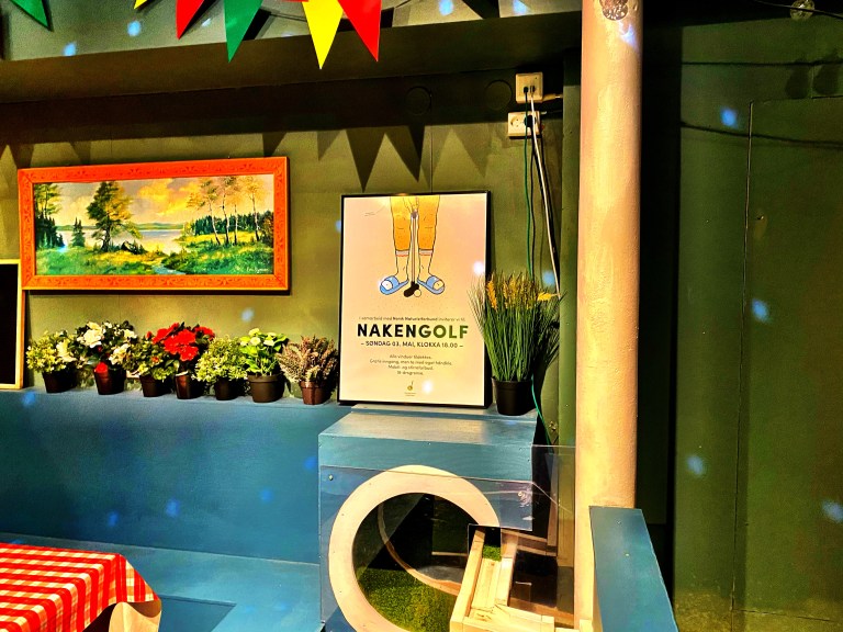 Haha, nakengolf! Og mobil og stirring forbudt!😂 Skulle gjerne vært flue på veggen her!