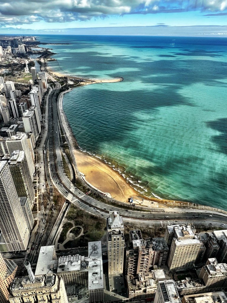 Vi landet i Chicago ettermiddagen den 8. april, og sjekket inn på hotellet vårt, Westin Michigan Avenue. Hotellet lå rett ved siden av Chicago 360 utsiktstårnet, så vi dro opp dit for å sjekke utsikten over byen.