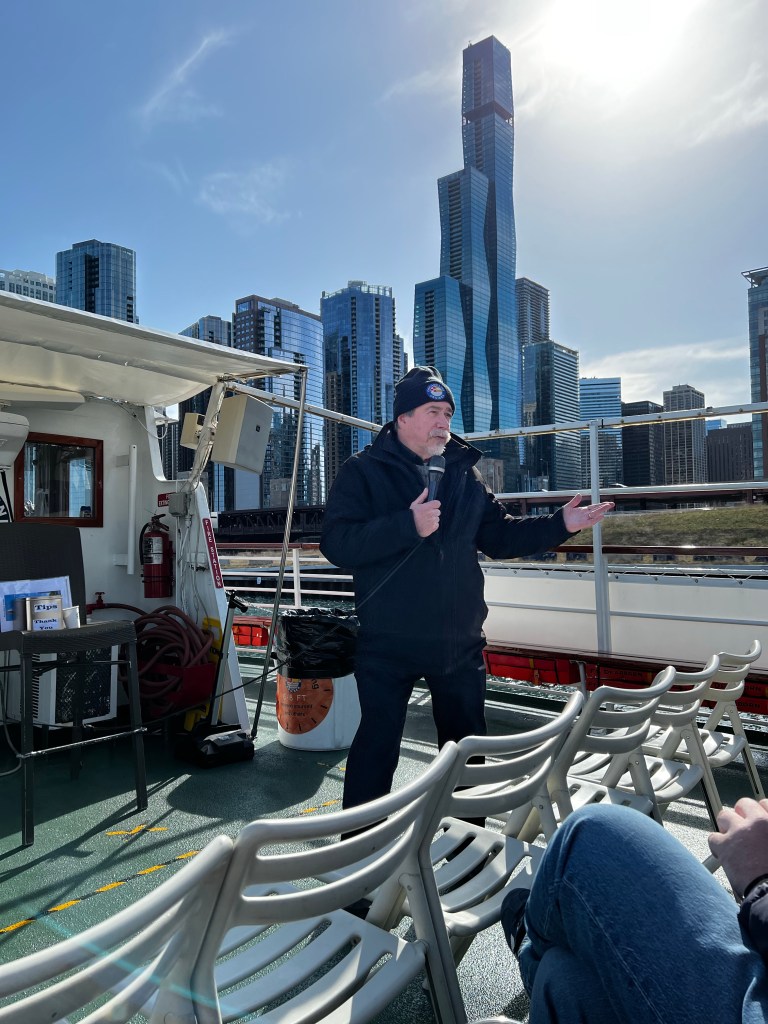 Denne lå litt utenfor byen, så da vi kom tilbake tok vi en båttur på Chicago river.