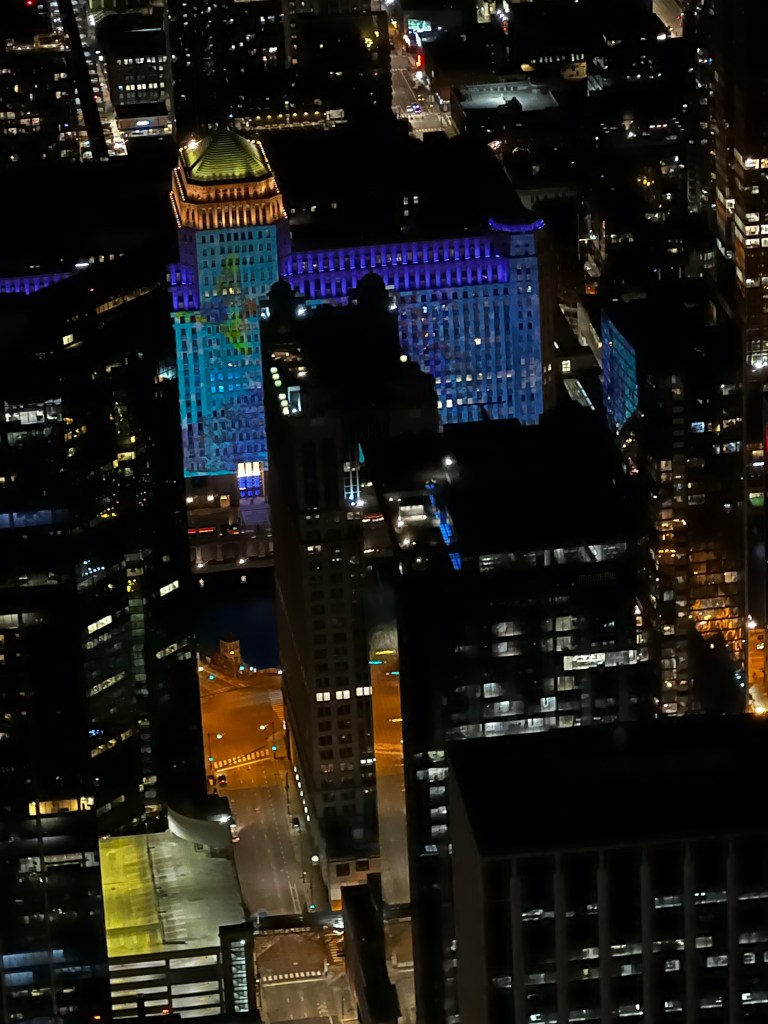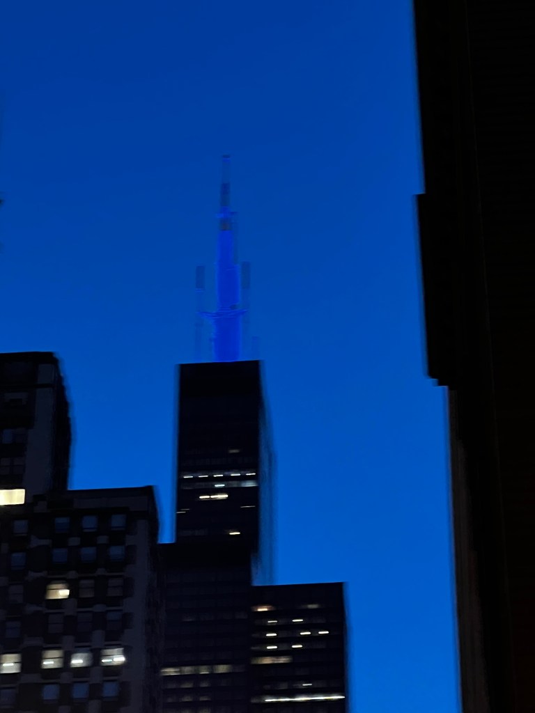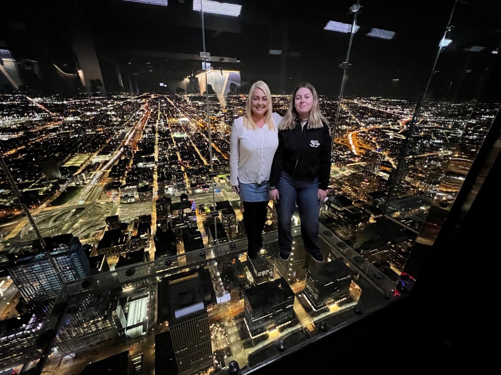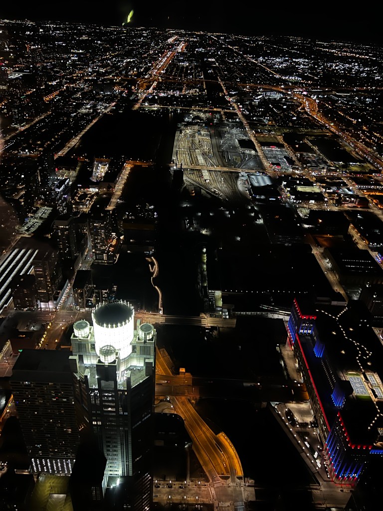 Da det begynte å bli mørkt, tok vi turen til Willis (Sears) Tower. Det var helt magisk!