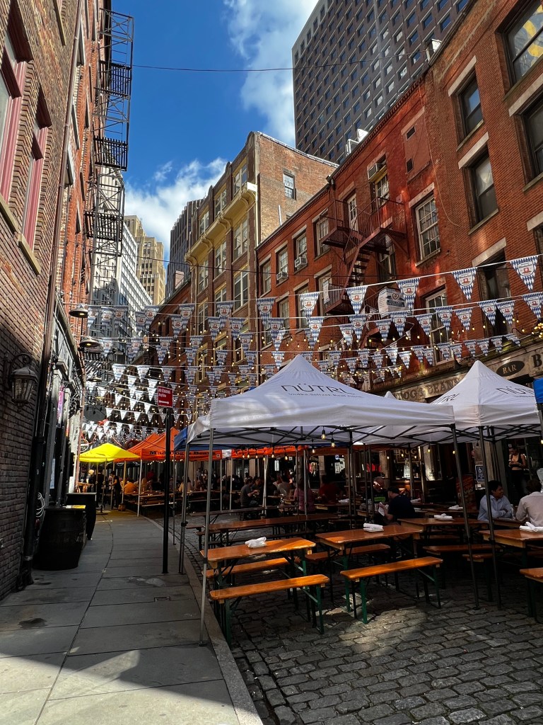 Etterpå dro vi til Stone Street, New Yorks eldste gate