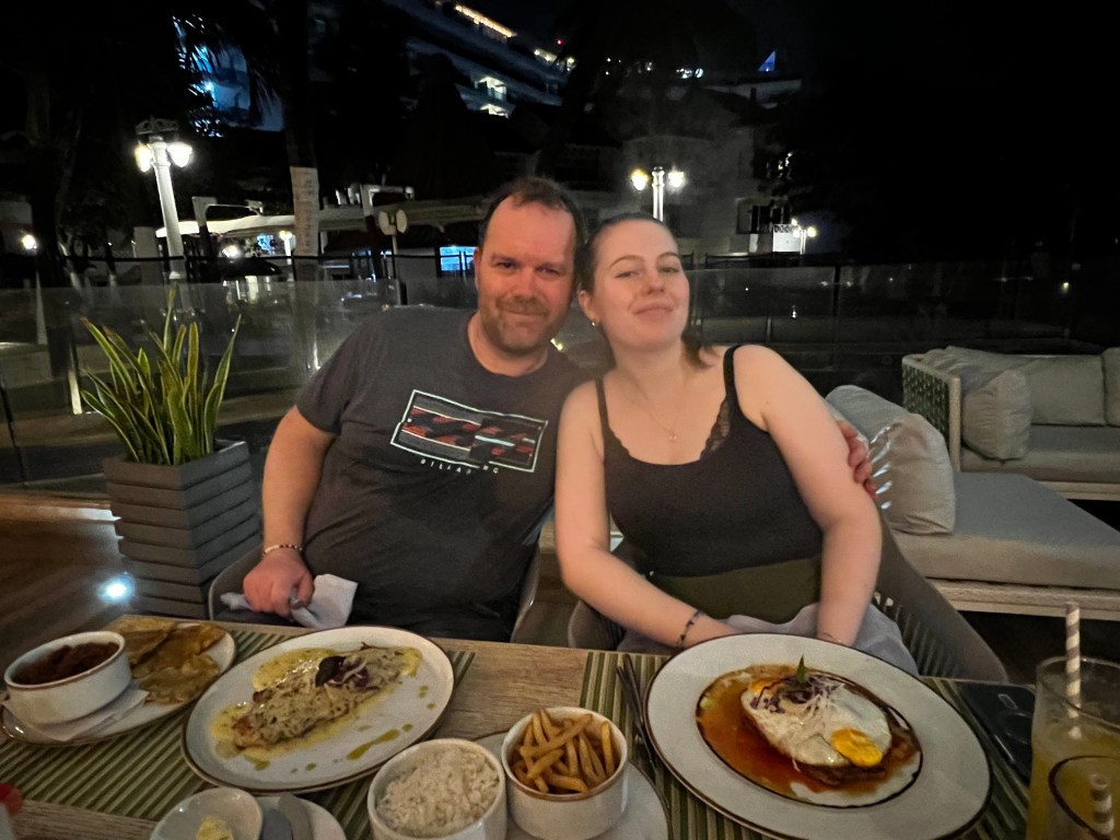 Vi tilbragte kvelden med å utforske båten og kose oss med god mat og underholdning